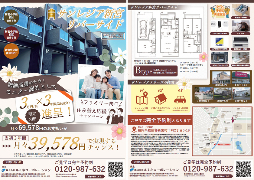 住み替え応援「限定3邸、月々3万円×3年間 進呈」キャンペーン開催中! お知らせ 2025.10.082025.10.10 資料請求は、こちら よりお願い致します。 来場予約は、こちら よりお願い致します。 ※お電話でのお申込は、Tel 0120-987-632 までご連絡ください。